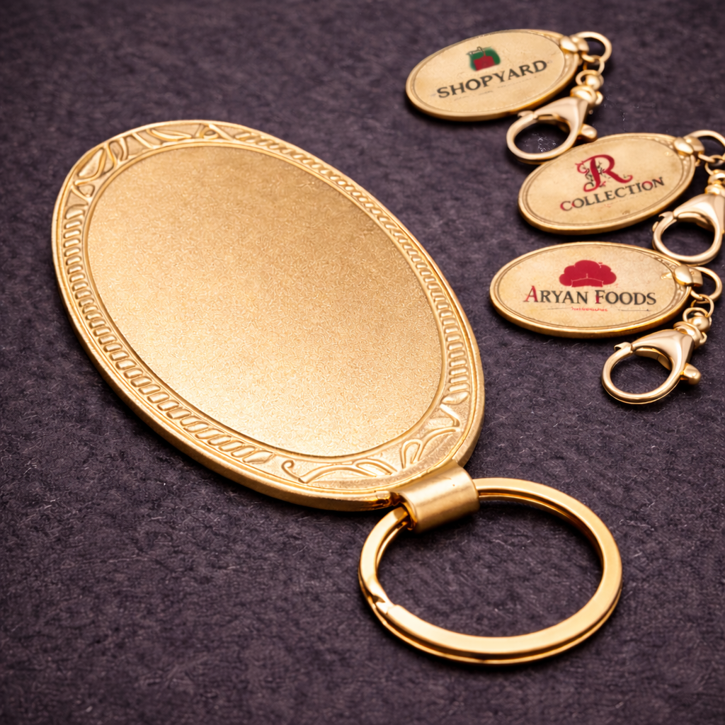 This custom logo metal keychain is designed for businesses and brands looking for a practical yet polished branding accessory. The oval metal surface allows clear logo or name printing, giving it a professional and refined appearance.
