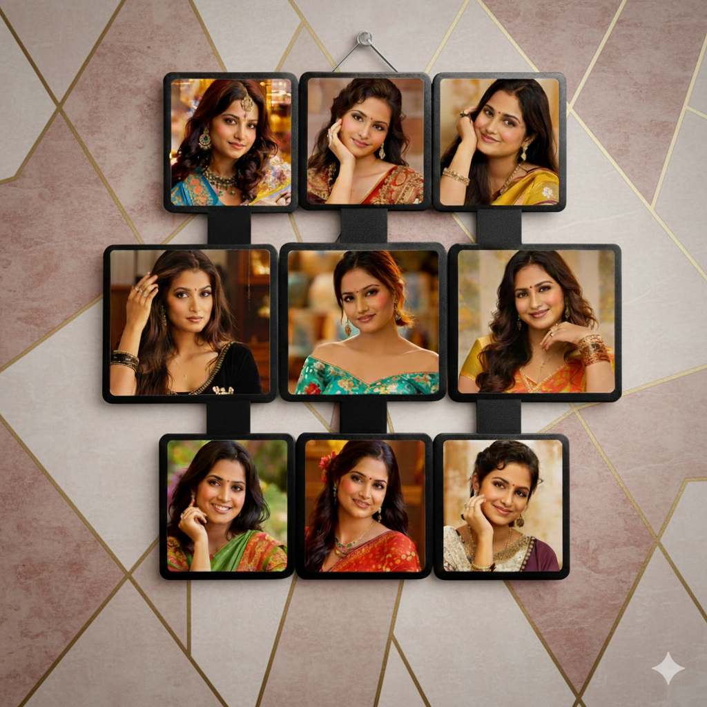 The Nine Frame Photo Wall Display is designed to showcase multiple images in a